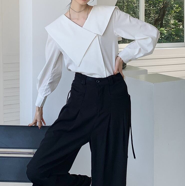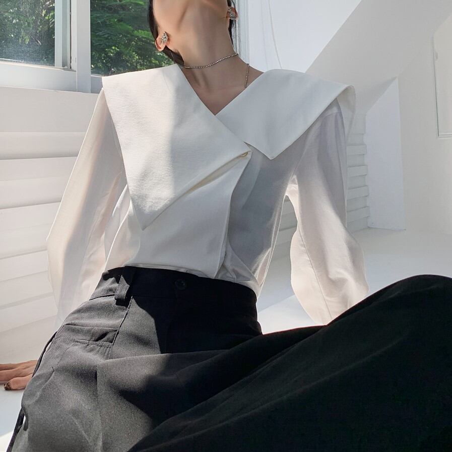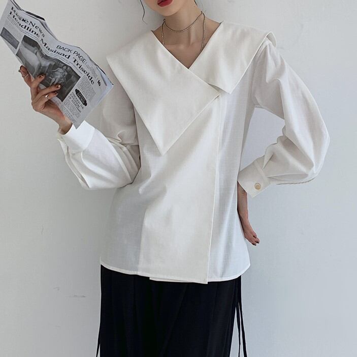 アシンメトリーセーラーカラーデザインブラウス 00166