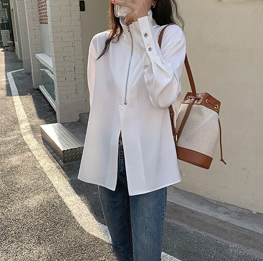 洗練されたハーフジップデザインの個性が光る デザインシャツ。 スタンドカラーやジップを下げて襟を見せたり・・ 1着で色んなスタイルで楽しめます。 ◇ size S 〔肩幅:50cm / 胸囲:106cm / 袖丈:56cm / 着丈:75cm〕 M 〔肩幅:51cm / 胸囲:110cm / 袖丈:57cm / 着丈:76cm〕 L 〔肩幅:52cm / 胸囲:114cm / 袖丈:58cm / 着丈:77cm〕 *モデル身長165cm、Sサイズ着用 *採寸方法により1~3cmの誤差がある場合がございます。 ◇ color ホワイト ブラック ◇ material ポリエステル 【重要:ご注意事項】 〈商品について〉 ◇こちらは輸入品となります。日本製とは検品基準が異なる為、新品未使用品でもごくわずかな汚れや ほつれがある場合もございます。 ◇仕入れ工場を変えることがあるため、記載サイズと若干異なる場合がございます。 ◇商品の色味は、お手持ちのスマートフォンの画面によって実物と若干異なる場合がございます。 ◇イメージ違いやサイズ交換等、お客さまご都合による交換、返品は対応出来かねます。 〈 お届けについて〉 ◇こちらの商品は海外店舗より直接発送となる為、ご入金から2週間~4週間前後でお届け致します。 ◇タイミングによっては 商品在庫切れにより注文キャンセルとさせていただく恐れもございますので、予めご了承くださいませ。 ———————————— 商品を購入いただく前にこちらの【ご購入前にこちらをお読みください】を必ずお読みいただき、ご了承の上お買い物いただけますようお願い申し上げます。 ☆ご購入前にこちらをお読みください↓ https://ftera.thebase.in/about ☆Hot Itemはこちら↓ https://www.ftera.shop/categories/4578778 ☆ショップのトップページはこちら↓ https://www.ftera.shop/ ———————————— ◆選べるお支払い方法 以下のお支払い方法をお選びいただけます。 ☑クレジットカード決済(VISA/Master/JCB/AMERICAN EXPRESS) ☑キャリア決済(docomo/au/UQmobile/Softbank/Y!mobile) ☑銀行振込 ☑コンビニ決済・Pay-easy ☑後払い決済 ————————————