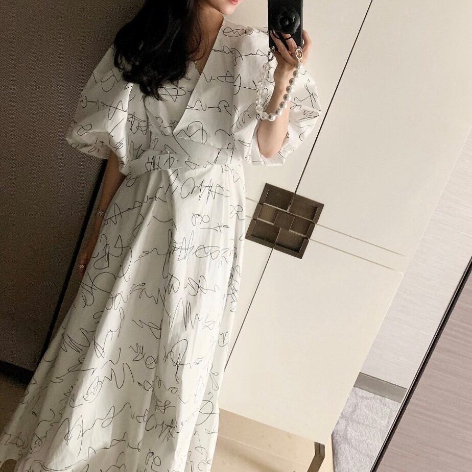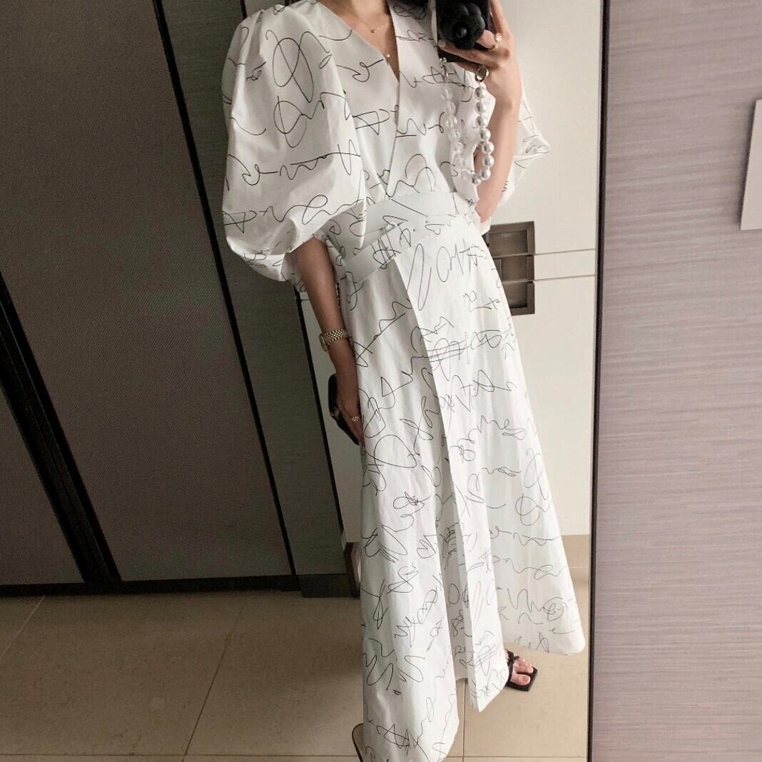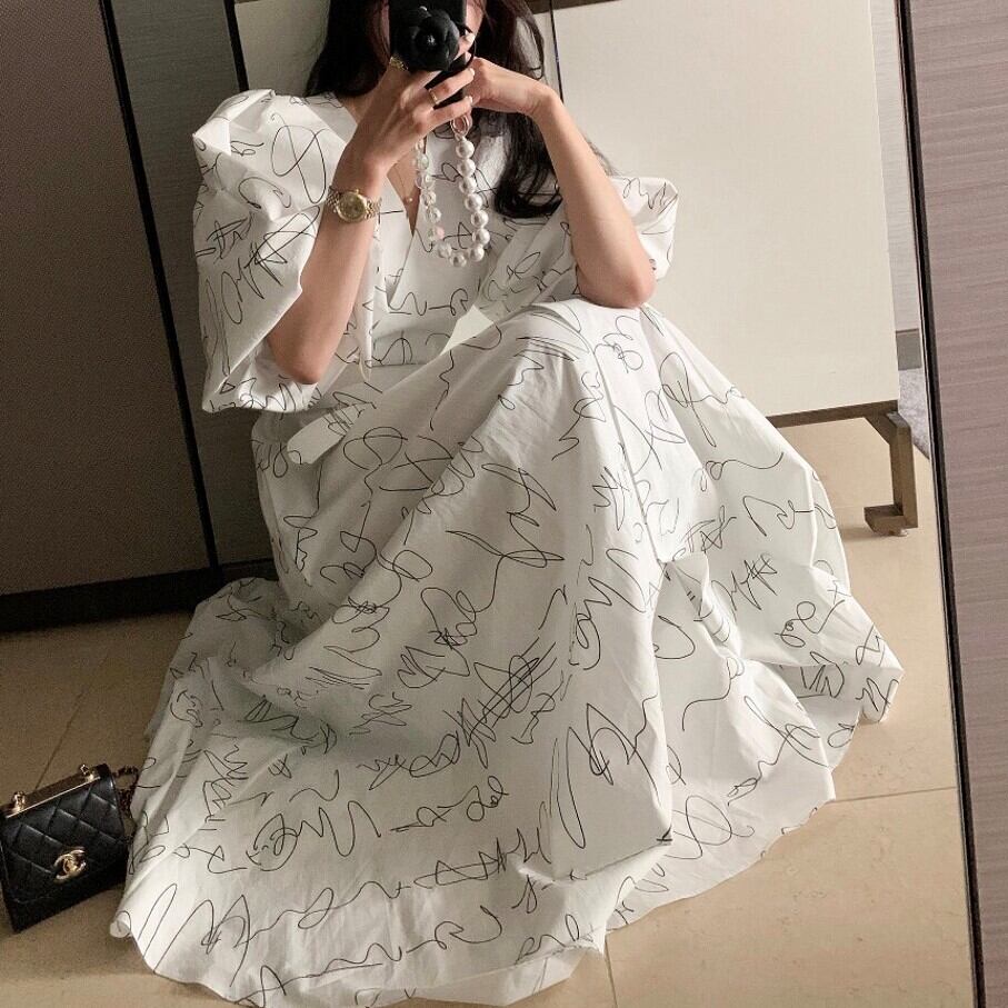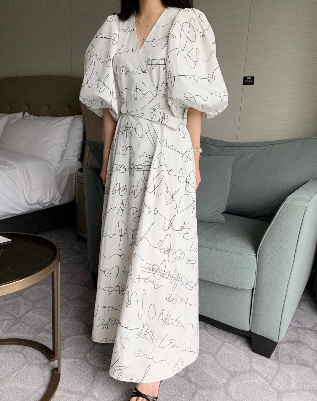 Vネックランタンスリーブワンピース 00294