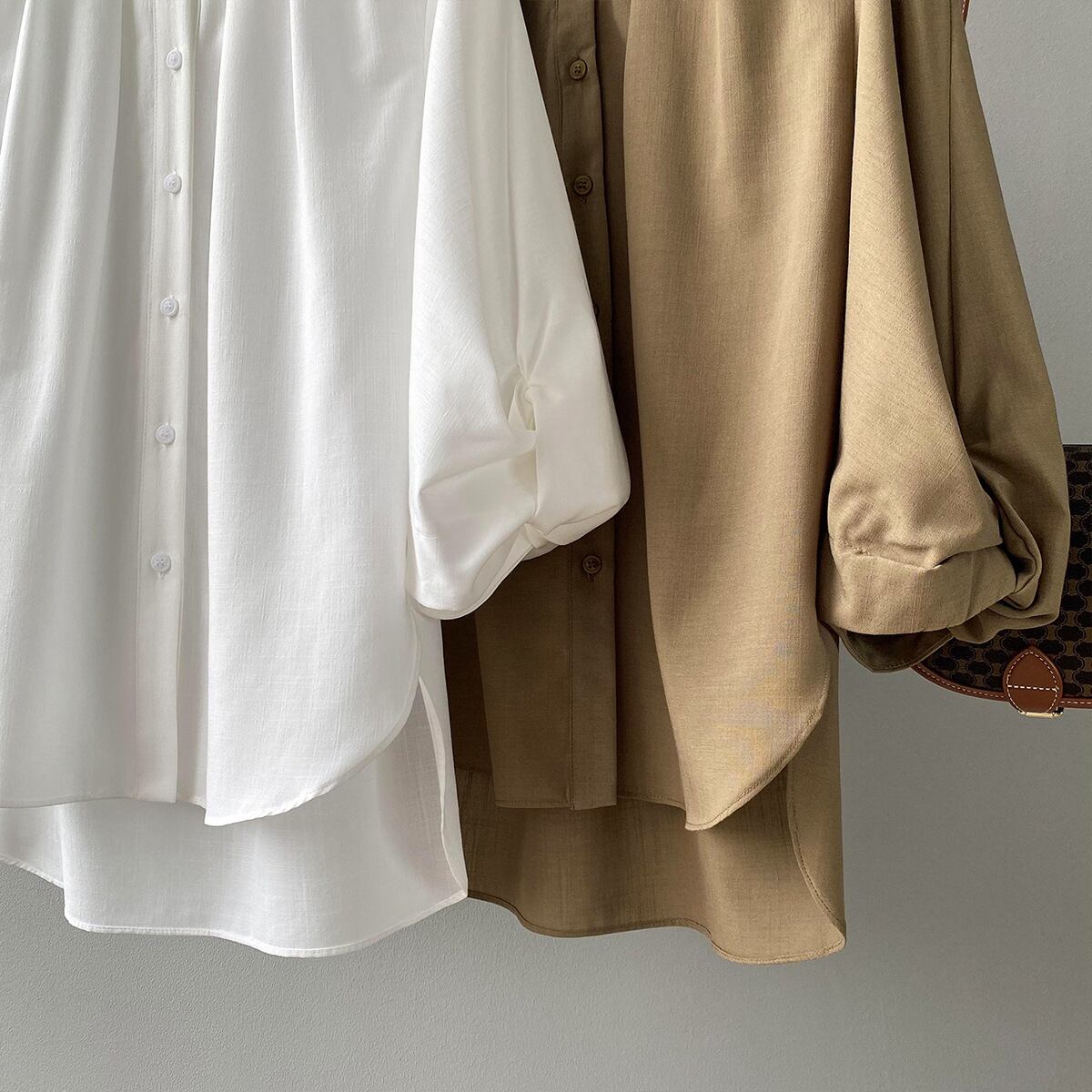 ノーカラーランタンスリーブシャツは、