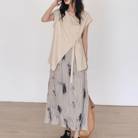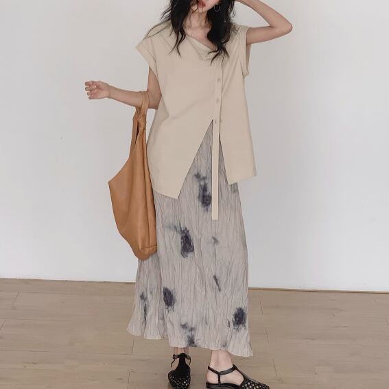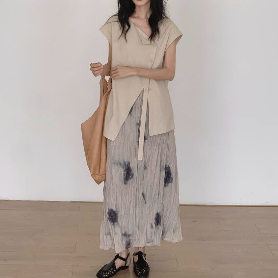 甘くなりすぎないお洒落なタイダイ柄のフレアスカート。