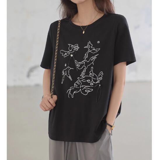 羽ばたく鳥がプリントされたユニークなTシャツ。 リボンがアクセントとして付いており さりげないが個性的なデザインが特徴です。 ◇ size M 〔肩幅:38cm / 胸囲:106cm / 袖丈:23cm / 着丈:62cm〕 L 〔肩幅:39cm / 胸囲:110cm / 袖丈:24cm / 着丈:63cm〕 *モデル身長166cm、Mサイズ着用 *採寸方法により1~3cmの誤差がある場合がございます。 ◇ color ◇ material 【重要:ご注意事項】 〈商品について〉 ◇こちらは輸入品となります。日本製とは検品基準が異なる為、新品未使用品でもごくわずかな汚れや ほつれがある場合もございます。 ◇仕入れ工場を変えることがあるため、記載サイズと若干異なる場合がございます。 ◇商品の色味は、お手持ちのスマートフォンの画面によって実物と若干異なる場合がございます。 ◇イメージ違いやサイズ交換等、お客さまご都合による交換、返品は対応出来かねます。 〈 お届けについて〉 ◇こちらの商品は海外店舗より直接発送となる為、ご入金から2週間~4週間前後でお届け致します。 ◇タイミングによっては 商品在庫切れにより注文キャンセルとさせていただく恐れもございますので、予めご了承くださいませ。 ———————————— 商品を購入いただく前にこちらの【ご購入前にこちらをお読みください】を必ずお読みいただき、ご了承の上お買い物いただけますようお願い申し上げます。 ☆ご購入前にこちらをお読みください↓ https://ftera.thebase.in/about ☆Hot Itemはこちら↓ https://www.ftera.shop/categories/4578778 ☆ショップのトップページはこちら↓ https://www.ftera.shop/ ———————————— ◆選べるお支払い方法 以下のお支払い方法をお選びいただけます。 ☑クレジットカード決済(VISA/Master/JCB/AMERICAN EXPRESS) ☑キャリア決済(docomo/au/UQmobile/Softbank/Y!mobile) ☑あと払い(Pay ID) ————————————