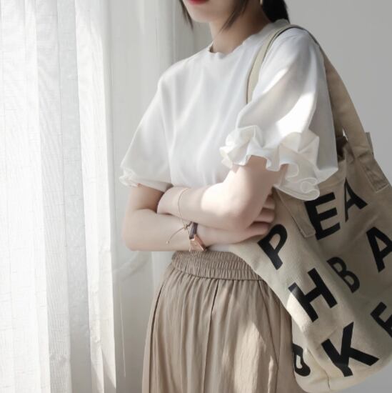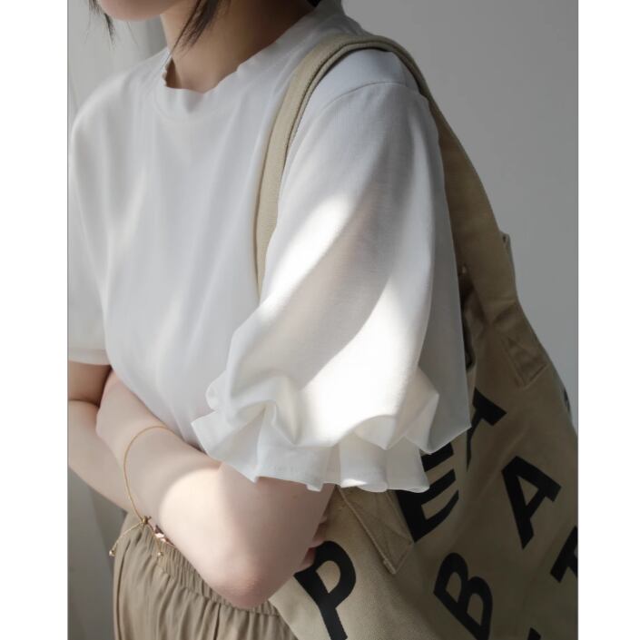 Tシャツとは思えない上品さがあるTシャツ。 ボリュームたっぷりのパフスリーブと フリルのディテールが、カジュアルな Tシャツスタイルにエレガントさをプラスします。 ◇ size S 〔肩幅:39cm / 胸囲:92cm / 袖丈:22cm / 着丈:59cm〕 M 〔肩幅:40cm / 胸囲:96cm / 袖丈:23cm / 着丈:60cm〕 L 〔肩幅:41cm / 胸囲:100cm / 袖丈:24cm / 着丈:61cm〕 *モデル身長168cm、Sサイズ着用 *採寸方法により1~3cmの誤差がある場合がございます。 ◇ color カーキ ホワイト ブラック ◇ material ポリエステル 【重要:ご注意事項】 〈商品について〉 ◇こちらは輸入品となります。日本製とは検品基準が異なる為、新品未使用品でもごくわずかな汚れや ほつれがある場合もございます。 ◇仕入れ工場を変えることがあるため、記載サイズと若干異なる場合がございます。 ◇商品の色味は、お手持ちのスマートフォンの画面によって実物と若干異なる場合がございます。 ◇イメージ違いやサイズ交換等、お客さまご都合による交換、返品は対応出来かねます。 〈 お届けについて〉 ◇こちらの商品は海外店舗より直接発送となる為、ご入金から2週間~4週間前後でお届け致します。 ◇タイミングによっては 商品在庫切れにより注文キャンセルとさせていただく恐れもございますので、予めご了承くださいませ。 ———————————— 商品を購入いただく前にこちらの【ご購入前にこちらをお読みください】を必ずお読みいただき、ご了承の上お買い物いただけますようお願い申し上げます。 ☆ご購入前にこちらをお読みください↓ https://ftera.thebase.in/about ☆Hot Itemはこちら↓ https://www.ftera.shop/categories/4578778 ☆ショップのトップページはこちら↓ https://www.ftera.shop/ ———————————— ◆選べるお支払い方法 以下のお支払い方法をお選びいただけます。 ☑クレジットカード決済(VISA/Master/JCB/AMERICAN EXPRESS) ☑キャリア決済(docomo/au/UQmobile/Softbank/Y!mobile) ☑あと払い(Pay ID) ————————————