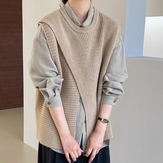 アシンメトリーニットベスト 00846